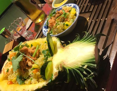 环境不错、吃的也蛮好吃的、菠萝炒饭不错、虾也不错