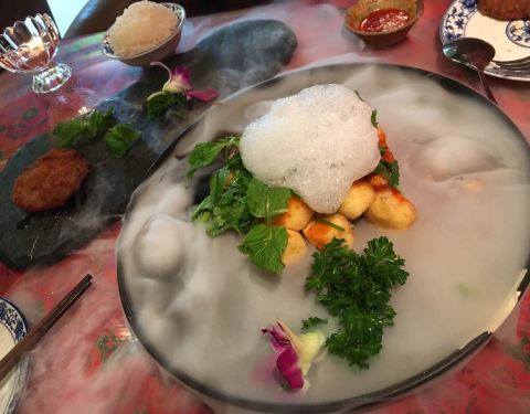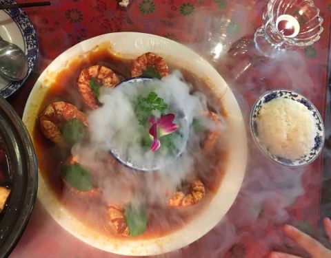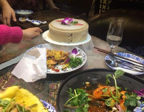 餐厅内部的面积其实蛮大的,举架特别高,就搭建出了一种森林般的感觉。几乎每个餐桌旁边都有一株椰子树,每一个餐桌的装修风格都是古色古香的。最喜欢他们家的吊灯,这种古色古香的宫灯一直是我的最爱。餐厅的中间...