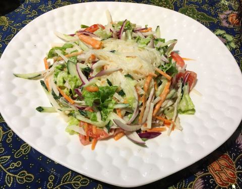 ...蔬菜沙拉』在普通的蔬菜沙拉里加入了粉丝,更奇特的是加了山药,口感特别好,最开始我竟然以为是荸荠