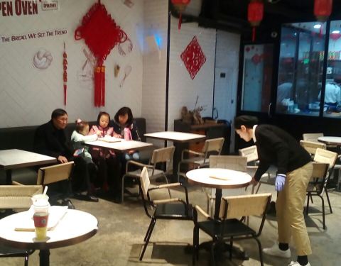 ...,店面很大,餐区装饰新潮,这里前店后厂,每天为顾客提供数十款自制的新鲜糕点,还有多种饮料、咖啡