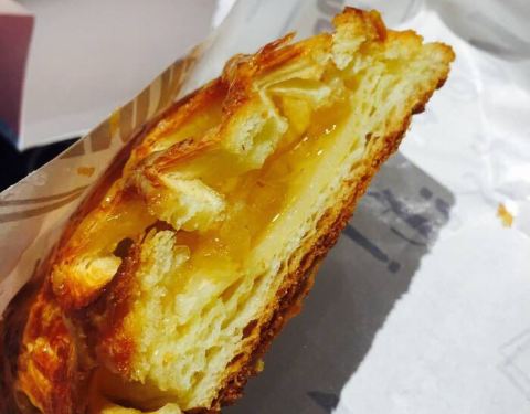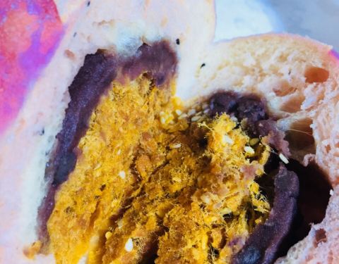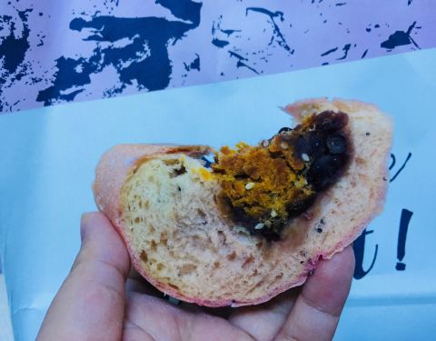 『2017年11月18日』 香喷喷的面包香香香~ 其实我对面包的研究真不多,因为也不爱吃,可是我有个好朋友远在广州总是羡慕我们上海这边各种面包店,耳读目染所以也经常会留意面包店,这家是来了两次万象城发现生意都特别好,就想看看到底是什么卖的那么好。 当天试吃的面包是蒜香维也纳,为什么就这个名字你还是问店主吧,我怎么知道,哈哈!但蒜香味很浓郁,我表示很满意啊!被这个诱惑了,就决定买了,然后在结账的时候我老公临时要加一个【橙香火龙果】,感觉稍有奇葩,不过他自己吃我才不管呢,小伙伴就有人问这里面有馅料么,然而居然有!有!有!是辣肉松和豆沙的组合,而且这款居然是甜面包!简直不敢信啊! 蒜香维也纳 ¥12 果然试吃过就是安全一点,味道跟试吃的是一样的,而且第二天并没有影响到口感,真的棒棒哒,蒜香真的是我的爱,以前那些西餐餐前面包放蒜香的我也是超爱的~ 橙香火龙果我不想多说了,虽然说里面的馅料有点奇怪但味道还算正常,说多好吃我不觉得……但居然是招牌第一名推荐我简直~了~还有个阿姨在我们后面买了五个面包,把有名的都撸了一遍,厉害了,怎么吃的完呢