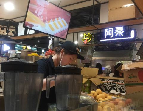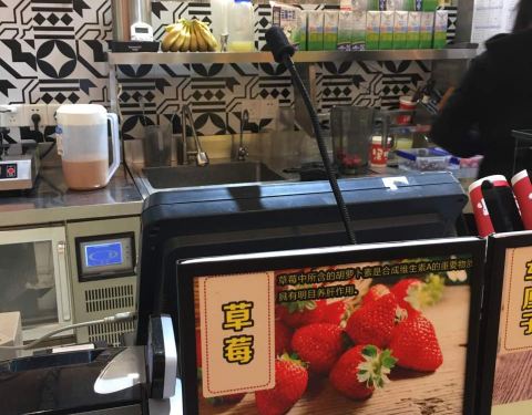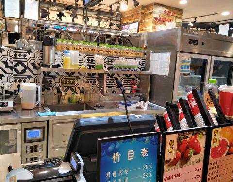 天虹负一楼饮品店真是啊,这家店的位置在中间、店里不算大、但是生意不错的、点了草莓雪梨、颜色还错、里面服务还是很好的、门口的水果看着很新鲜。