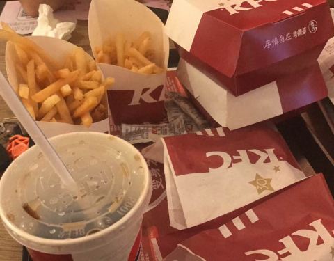 今天点了四份薯条 是真的咸。还有全家桶也咸 除了土豆泥还好 炸鸡翅真心咸到不想吃