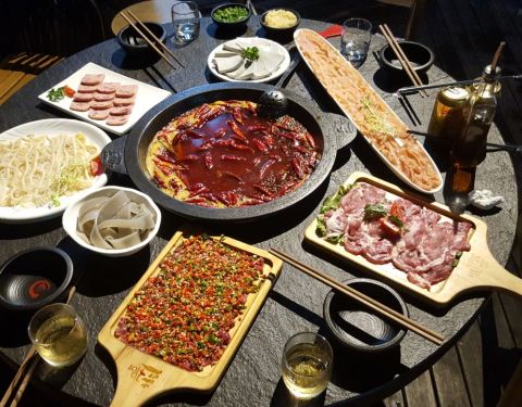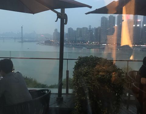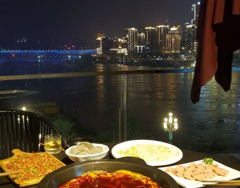 当地有名的川火锅店,露台尽览壮丽江景