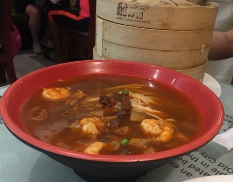 经常来法拉盛这家上海风味餐厅吃饭,正餐时间都需要排队等候,生意很好,可能是因为餐馆位置好,菜品物美价廉吧。点了每次必点的杭椒牛肉拌面,牛肉和肉汁拌面,加上杭椒的微辣,很好吃,还点了凉拌海蜇,清脆爽口,小笼包是赠送的,皮薄馅嫩,里面汤汁很鲜。