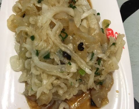 海蜇 小笼汤包 瓷饭糕 牛肉葱油饼 酥饼 熏鱼 咸豆花 八宝辣酱面 青菜肉丝炒年糕 海苔黄鱼