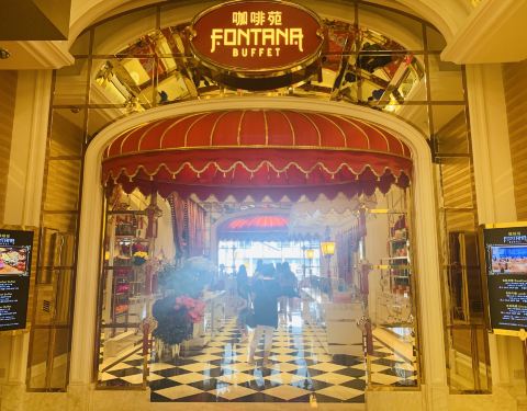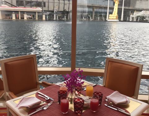 永利皇宫内的自助餐厅,可欣赏梦幻的水舞。