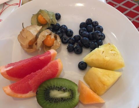 人超多排队吃早餐,开始有点不开心。服务员来回端来果汁安抚排队的客人,小声来解释道因为早餐是不预定的所以人数座位没法控制,午餐和晚餐是需要预定的就不用排队,嗯……可以理解。一进门被环境和食材惊艳到,食材超棒,种类丰富,服务更是温和礼貌贴心。光顾着吃,前面的照片都忘拍了,吃到点心和水果才记起来