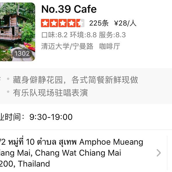 清迈必打卡咖啡店 酒店早餐后,就打车出发NO.39 cafe,早上很少人哈,喜欢拍照的伙伴建议早点去~ 咖啡厅是早上9:30开门~人均:20rmb,周末还有驻场哦~10:30后会越来越多人~因为比较早 基本都木有人哈 可以随意拍~(安利打车app:grab)输入目的后会有金额显示,无论塞车与否,都是规定一个价格,司机与我们的对话会自动翻译成中文,然后自己输入英文即可,非常方便,通常10~30秒就有司机接单。