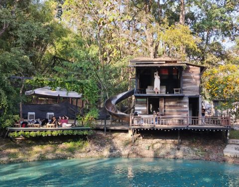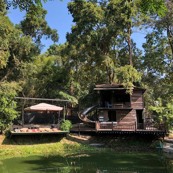被天使吻过的森林🌳屋||落入尘世之中 热辣辣的天气,我想找个地方乘凉,但这里不是乘凉之地,是谈天说地,歇着即可 这里的人不算太多,所以🌳屋的位置还能见缝插针找到位置,看准时机位置就是你的 📍地址:清迈大学后门 🚍交通:直接打grab前往 ⏰游玩时长:2个小时 人均费用:20rmb 营业时间:9:30-19:00 游玩挖坑 1要顾着拍照忘记听小哥哥唱歌,实在神仙级别,大概是5点左右 2东西和找位置是分开的,可以先找位置,以防好的位置被人占领 3树屋中午很热,滑滑梯更热,所以千万别傻傻的为了拍照而拍照,大概5点左右太阳舒缓比较好拍照 4中午去实在很热,虽然有冷风机,能解点热 5里的咖啡还不错,边喝边聊天,还不错 6湖水并没有那么干净,但是有些小动物,可以溜一下 7附近步行10分钟还有一个森林寺庙的乌蒙寺,可以去打卡