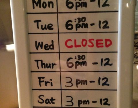 Mon-Thur 6pm-12am. Fri-Sat 2pm-12am. Closed on ...