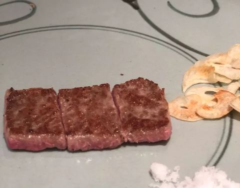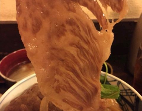 想花小钱吃神户牛肉这家是很好的选择,吃的是牛肉盖浇饭,神户牛的特色就是肥瘦相间,看看这个纹路就觉得好吃,价格还实惠,只要100多块钱。
