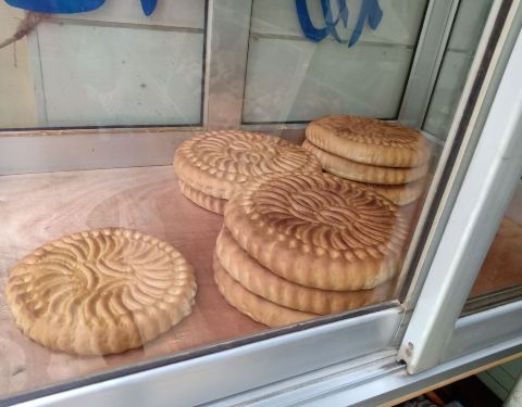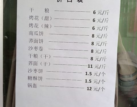 杨记干粮,果然是香飘在外,闻着香香的味道,很容易就找到了,具体在文庙巷里,靠近敦煌特色小吃街,位置不算特别显眼,门脸也不够大,依然掩盖不了食客的喜爱,陆陆续续一直顾客盈门。店内面积也真是有限,尤其是橱柜外,可供立足的顾客数量确实不过三五个而已,绝大部分的空间要进行产品制作,看来生意是真的好。根据推荐,买了等价的南瓜饼沙枣卷合计一斤,看着硬,其实咬一口是软的,略甜,有嚼劲,少油无盐,非常好吃,老妈很是喜欢,适合老人吃,还有原味干粮一斤,略带点椒盐的味道,淡淡的清香,烤花要硬一些,属酥脆型,还有更甜一些更辣一些更咸一些的不同口味,有机会再来尝试吧,总体感觉,所有的干粮,油都不大,面的质感和口感都很好,常温下可以储存一周左右,经济实惠,好吃不贵。吃完再来。