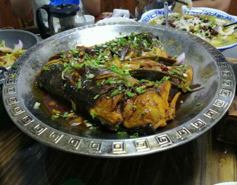 又来吃啦新鲜美味,朋友都说好~看到么,那条大大的胖头鱼就是那个美味鱼头,现杀的哦,好大~吃的精光哈哈哈~~香酥鸭,真的又香又脆也很入味~当然啦,价格也是很实惠~吼吼吼~