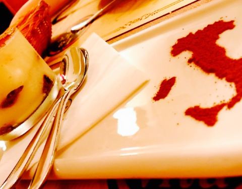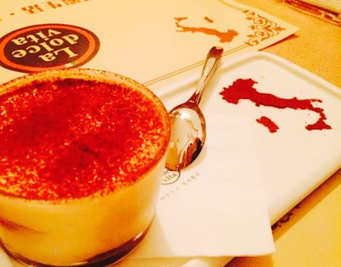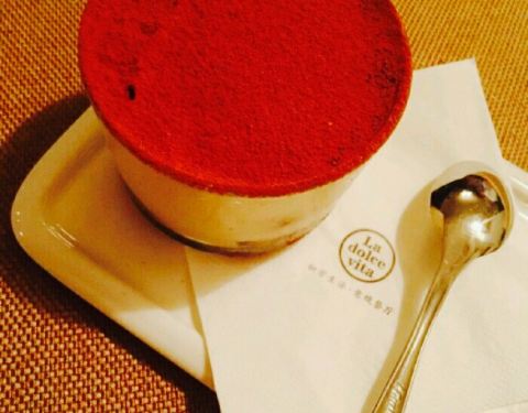 心心念念的提拉米苏,今天陪家里的人到处闲逛后突然想吃点甜点,刚好走到这里,果断去拔草,种草很久,店里环境不错,复式的,前门有小花园,店里复式二楼可以吃饭,一楼是意大利进口的各种酒,提拉米苏的咖啡味没有星巴克的浓重,奶酪很浓密,可可粉很醇香,总的不错。