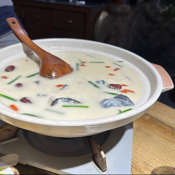 这里首推的是鱼钩鱼炖汤,不愧是店里的点击率最高的菜,鱼汤熬制的奶白奶白,鱼肉很肥厚,搭配山药,一个字——鲜!
