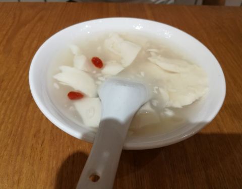 红豆羹不算特别浓稠,但是沙沙的口感很好,加了酒酿多了一点米酒的香气,还有小小的糯丸子,我觉得...