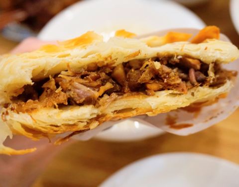 店内装修比较简洁清新派,开放式厨房,显得干净明亮,类似简约新派咖啡店的风格吸引了很多年轻人和外地游客,我进店的时候人还是不少。买了豆腐脑,卡饼,醉豆花。在二楼等。 豆腐脑端上来,摆在我面前的时候,瞬间我就不想走了,临时决定就在店头吃,勺子在碗里搅拌着,香味就出来了,怕朋友在翘脚牛肉馆等的久就吃的快,烫藤了,但是很好吃,豆腐脑的口感很调料的香味都很安逸。 卡饼带回翘脚牛肉店吃的,觉得影响不深刻了,醉豆花在吃完啦翘脚牛肉和英子油炸以后在酒店床上躺起吃,更安逸,完美夜宵甜品。