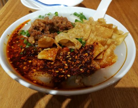 去乐山之前在网上看到一篇文章有推荐这家店,决定去尝尝。住的地方离得不远,早上走过来也就几分钟,到的时候差不多9点40左右。远远看去装修比较新,整个店堂不大,给人感觉很明亮,吃饭的人也较多。点的牛肉豆腐脑和冰醉豆花,冰醉豆花还可以加热,结果小弟的冰醉豆花吃完我的牛肉豆腐脑都还不上。后来问服务员说还在做,差不多等了20多分钟才上来。不过里面的料挺丰富的,牛肉有几坨用的应该是边角料,辣椒油很香,还是很好吃的,比牛华豆腐脑好吃多了。来乐山这家店是可以尝试的,就是服务员的培训要加强。