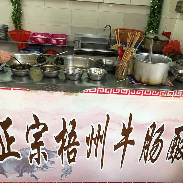 梧州的刘牛肠酸相当的有名气,就在步行街的拐角处,算是一个小店铺店铺的前面有一些小位置,就是蹲街边的那种了。 这边的牛杂还算是可以的,性价比还是比较不错,吃起来口感也还可以,但是觉得牛杂没有广州这边好吃,有一点点辣的元素在里面,酸倒是挺酸的,因为那天下大雨走过的人的雨伞,经常会滴一些雨水下来,觉得比较麻烦。