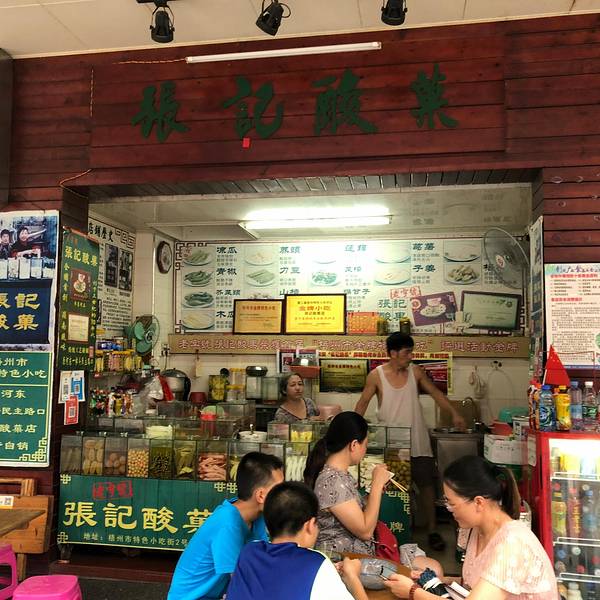午饭过后,天气炎热,景点不想逛了,去看了场电影,出来又饿了!开启扫街模式! 早上没喝成豆浆,去骑楼城 冰泉豆浆馆的分店喝了碗豆浆!豆浆喝完了,来试一下当地的另一特色小吃,牛肠酸! 牛肠酸之前去贺州旅游的时候也吃过,当相比之下,差太远了。这家明显的汤底要浓郁,口感丰富,由多种材料烹煮而成! 就是烫个蔬菜,也非常好吃,值得推荐。 由于是街边小店,环境一般,坐在路边吃,还是挺热的牛肠酸隔壁就是张记酸果,都是一家老店,里面售卖各种的果蔬酸果,夏天吃的酸的,还是挺解渴的!