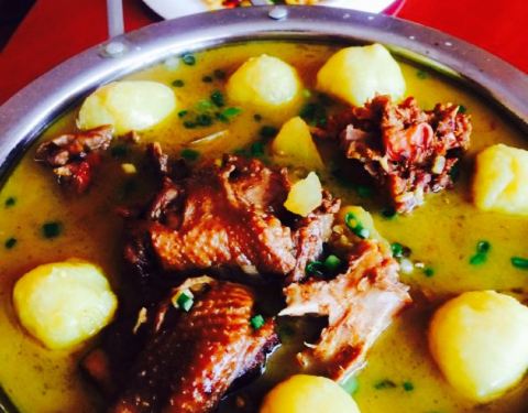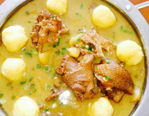 本地笨鸡也炖的很可口,肉质是红色的,口感比普通肉鸡好许多,素糕很软