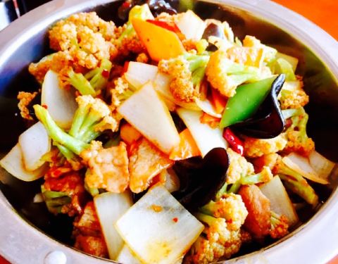 店面地址特别好找,钰景花园南门囗,象个塔楼一样的建筑,挺有特色。地地道道的本地农家菜,味道十分不错,土豆炖的很沙,很可口。本地笨鸡也炖的很可口,肉质是红色的,口感比普通肉鸡好许多,素糕很软。过油肉小花圈很有特点,大伙吃着很鲜美,不一会儿就把一盘吃完了。这边的莜面是纯手工做的,小伙子手艺不错,莜面窝窝簿厚适中,条条明显比机器压的粗,必竞手工搓的。总的来说饭菜味道很好,大伙吃的很好,基本都光盘。