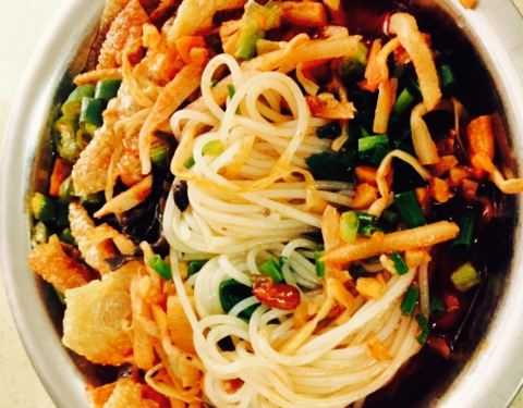 - ...开心,青菜给的非常多,腐竹,木耳和花生也非常多,粉超级有弹性,辣椒油特别香,是逛街必去的好地方