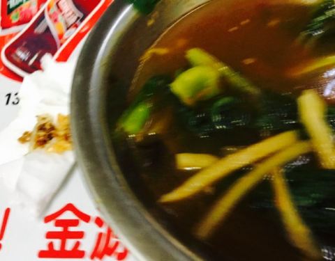 第一次来柳州,听人说螺蛳粉是必尝的美味,一直很想试试。逛步行街的时候偶然搜到了这家店,店面不大,还躲在巷子里,价钱倒很实惠,螺蛳粉才7元一碗,团购才5,5,意料之外的便宜。不是饭点,就三三两两几个客人,环境和餐具都比较简陋,桌上还油腻腻的。一碗螺蛳粉并不多,闻着臭,吃着香,里面有花生,炸豆皮,木耳,空心菜等许多配料,味道很奇特,但一下子就爱上了螺蛳粉,有机会还想吃一碗。