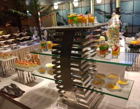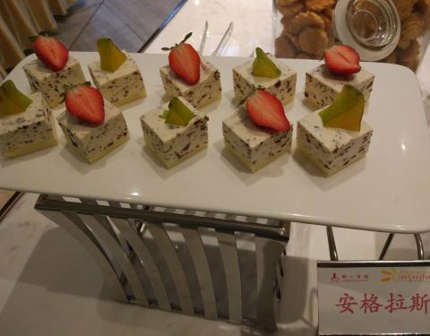 ...,糕点很好吃,海鲜类比较新鲜,毕竟价位在,品种不算多但比较精,优惠后是高档自助餐中性价比较高的