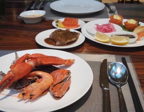 - ...,糕点很好吃,海鲜类比较新鲜,毕竟价位在,品种不算多但比较精,优惠后是高档自助餐中性价比较高的