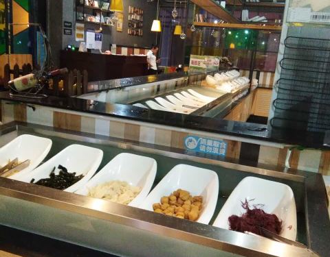 和同遊朋友一起来的,我们点了一份牛排,两份火锅,牛排还是不错的,有入味肉质也是挺嫩的,最最最主要的是自助的菜品还比较丰富,环境还算是非常的好,绝对能能吃到饱,很不错,性价比很高!