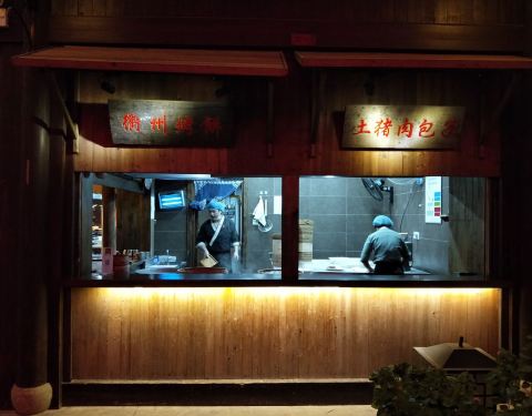 古铺良食是衢州当地最著名的品牌,这里就是它的总店位于水亭街道里面的,穿过一个霓虹灯做成的通道就能够走到来这一边。 这里的很多特色都想到的不错,尤其是这边的小吃,例如说包子还有粥,都是相当好的,皇后粥...