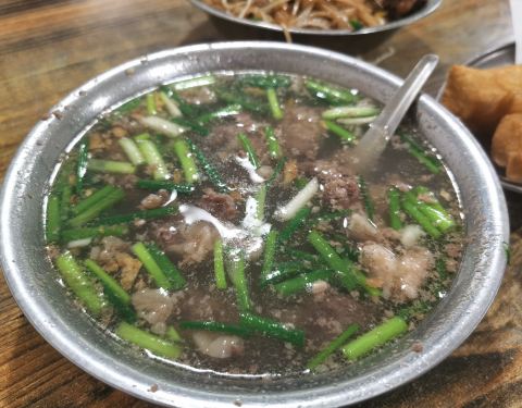 真的就是一个水井旁边,人多的时候大家都围着井一起吃,油条很脆,很香,海鲜粉里的料很足还挺好吃的,我跟同学两人就吃了一碗,再加两根油条