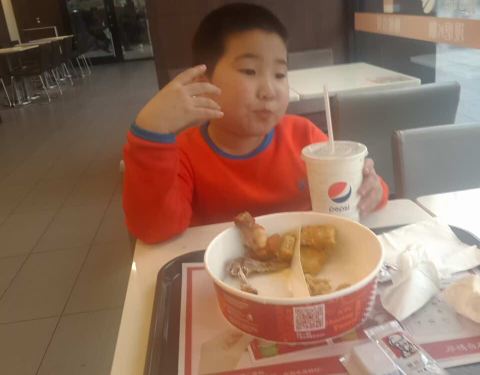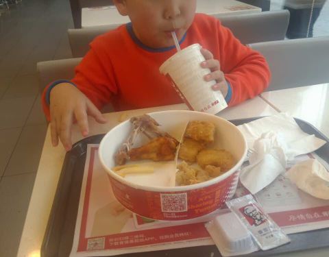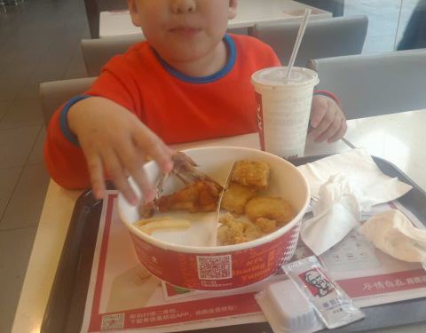 就是人超多,孩子有段时间没有吃过,放弃西游电影不看,要来肯德基,不过点餐后,上餐速度很快,给他们赞一个!