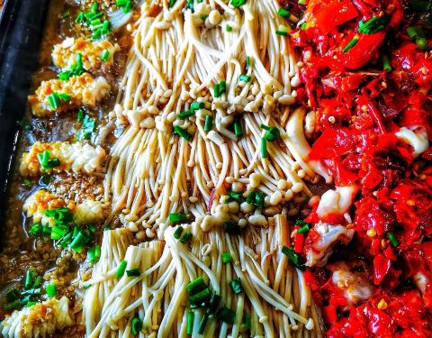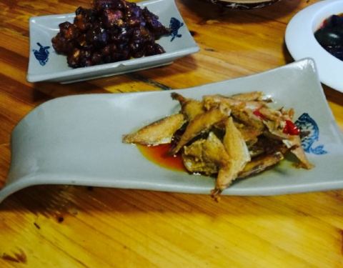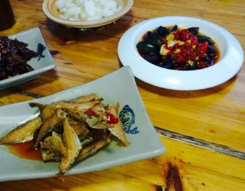 一家本地的农家乐餐厅,还不到五点半,全部的房间全满,还有外面有一个亭子可以坐一桌,于是乎,感受了特别不一样的一餐。他家的菜特别精细,四个小菜,剁椒皮蛋,香烤剥皮鱼,香辣藕节,还有一个忘记了,个个鲜...
