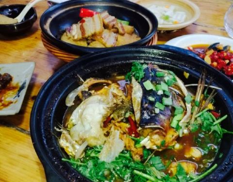一家本地的农家乐餐厅,还不到五点半,全部的房间全满,还有外面有一个亭子可以坐一桌,于是乎,感受了特别不一样的一餐。他家的菜特别精细,四个小菜,剁椒皮蛋,香烤剥皮鱼,香辣藕节,还有一个忘记了,个个鲜...一家本地的农家乐餐厅,还不到五点半,全部的房间全满,还有外面有一个亭子可以坐一桌,于是乎,感受了特别不一样的一餐。他家的菜特别精细,四个小菜,剁椒皮蛋,香烤剥皮鱼,香辣藕节,还有一个忘记了,个个鲜美。热菜就更加丰盛了,砂锅农家鱼头,张公豆腐,腊肉素鸡,清炒南瓜藤,也是特别好吃,成功的美食体验。