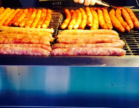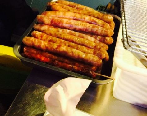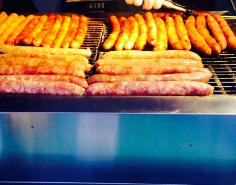 话说来自的台湾的食品现在在大陆很受欢迎哦,这个号称台湾(我没去过,不好考究啊)知名香肠就在竞争激烈的美食街独树一帜,人气爆棚,每次排队都超过15分钟,我经过了几次,最后实在忍不住加入了排队的大军中^_^(我承认是我馋) 。排了10多分钟,好不容易到我了,隔着玻璃看见一个漂亮妹纸在手灌香肠,另一个小哥在很敬业的烤香肠,香肠还挺大,虽然隔着玻璃,只是能闻到一股肉的焦香,女儿在边上口水直流。一般一根香肠烤15-20分钟,一次可以烤20多根,小哥一边不停的在炉上翻香肠,一边收钱打包,动作很麻利。终于拿到香肠了,10元一根,号称纯肉无淀粉,吃到嘴里很香糯,嚼起来也蛮有嚼劲的,不像一般的香肠那么硬,回味还有丝丝甜,确实蛮特别的。只是不能多吃,毕竟也是肉,吃多了会腻。好期待老板来上海开分店。