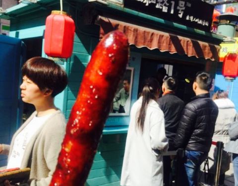 话说来自的台湾的食品现在在大陆很受欢迎哦,这个号称台湾(我没去过,不好考究啊)知名香肠就在竞争激烈的美食街独树一帜,人气爆棚,每次排队都超过15分钟,我经过了几次,最后实在忍不住加入了排队的大军中^_^...
