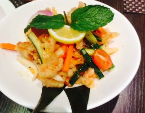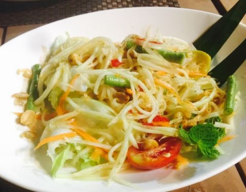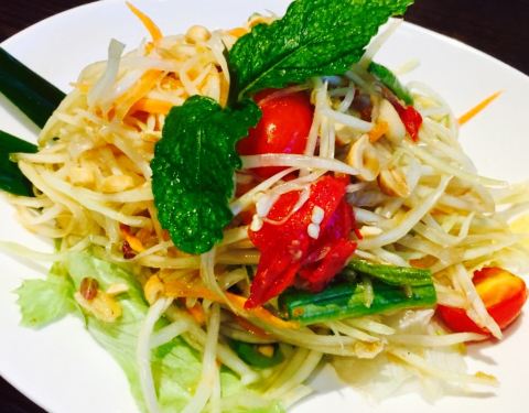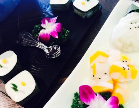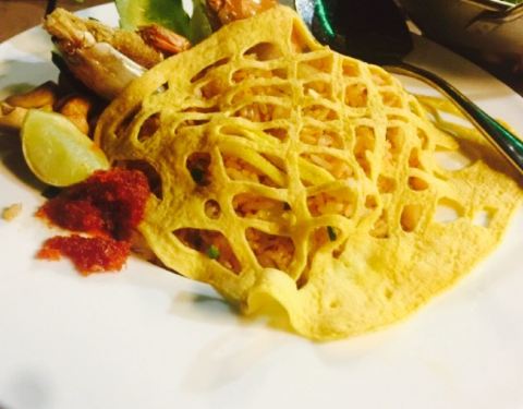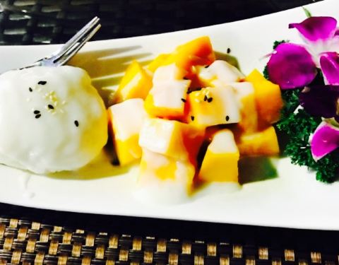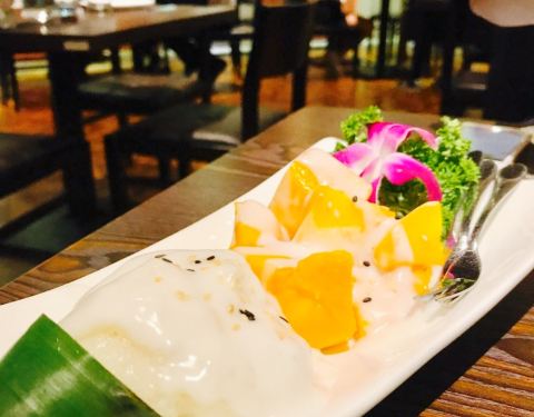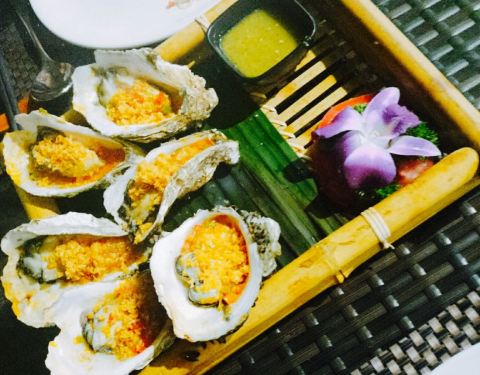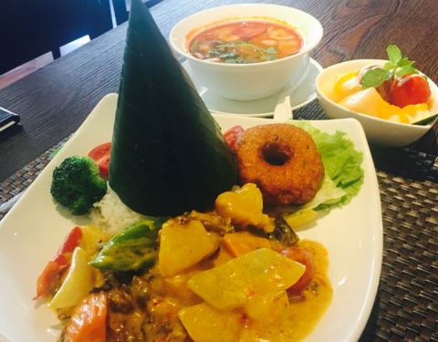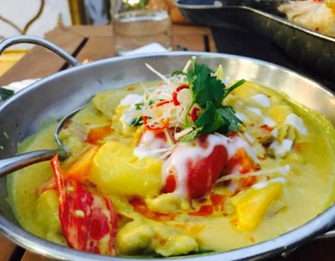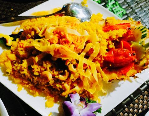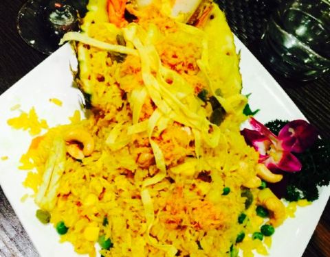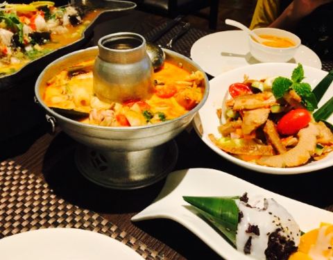 今日,吃泰国菜,见到朋友发好像好鲜美,因此就去了。环境很美丽,比较喜欢做走廊,觉得比里面舒服。点了荷叶包鸡,鸡肉很滑,烤的刚刚好,加上酸甜的酱料,一级棒。点了菠萝炒饭,米粒金黄金黄的,饭很可口,就是饭里面的海鲜没有味道的。点了个马沙文咖喱,里面有虾,洋芋和胡萝卜,看着红红的一锅,吃起来完全不辣还甜的,还以为很辣,吓死宝宝了。??,点了个生蚝,半打,你会觉得生蚝味道一般般,烤的边硬硬的,里面还有小碎片,这个差评咯。四个菜,两个女生,吃的好饱啊,平均一个菜六十左右吧,只是的确可以去尝试哦。