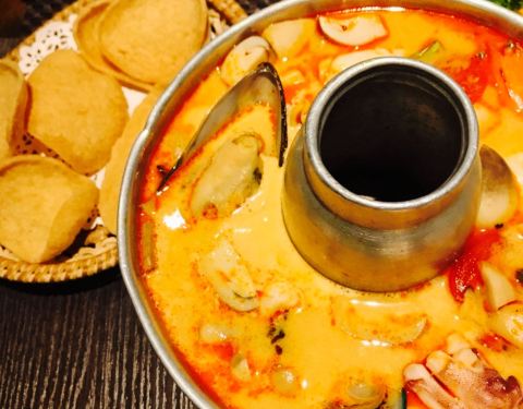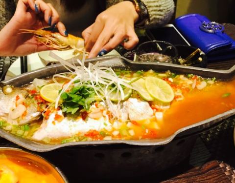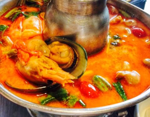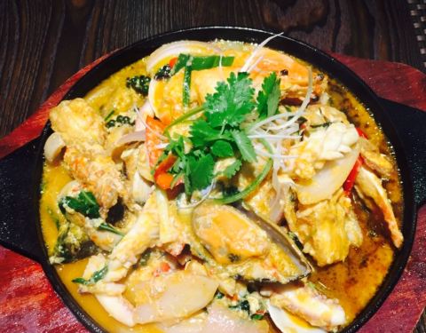感觉那个冬阴功汤不错,那个大盘螃蟹虾鱿鱼不入味,好像是蒸的加上烤干的样子,烧烤又不是烧烤,没什...
