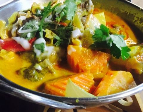 ...沙文咖喱,里面有虾,洋芋和胡萝卜,看着红红的一锅,吃起来完全不辣还甜的,还以为很辣,吓死宝宝了