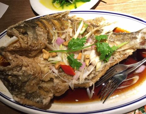 还不错,烤香蕉蛮好吃的,坚果鲈鱼也挺好,环境气氛都不错
