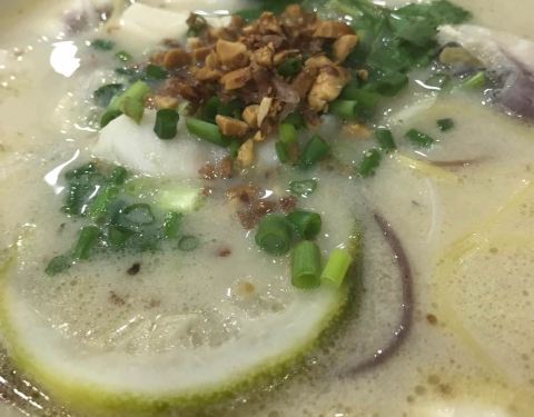 来吃柠檬渔粉……还好,两片柠檬,汤有点酸,还带着小小柠檬皮的苦涩~