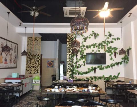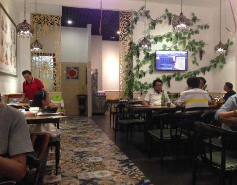 环境和服务态度还可以,口味就个人来说有点腻,油多,2人行,点了一个饭,一个炒面,一个炒土豆丝,4串烤羊肉,2杯酸奶消费110多,算比较实惠吧。