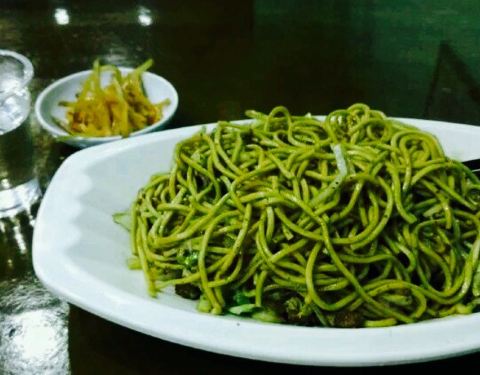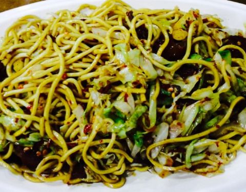 听好多人说黄记炒面好吃,昨晚专门就去吃黄记。因为下雨,人不是很多就餐环境好。问老板哪种炒面吃得人最多,老板娘说牛肉炒面和肥肠炒面吃得人最多。我选了牛肉炒面,让老板放重辣,老板娘一直说她家辣椒非常辣,我说我不怕。炒面上的速度很快,凉面比别家的粗,不会像别人家的炒面烂乎乎的,整盘炒面看着很清新。口感还是不错的,老板娘说的特辣吃着真的像中辣。炒面的份量很足,吃不完。下次应该中午吃,这样能吃完。好评。