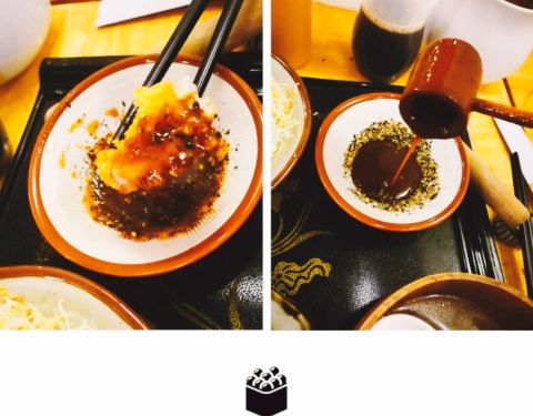 中午快12点到,人还不算很多,大概午市不会很多人吧,幸好不用排队。点了两份比较经典的猪扒套餐吧,套餐里面有汤,菜,青瓜,饭还有猪扒啦,一份黑白芝麻,用锤子自己捣碎,再加酱进去,挺好玩的呀。普通汤觉得不错,本人不太喜欢味增汤的味道,沙拉加千岛酱的味道也是不错的呀。再说说主角猪扒吧,包芝士的猪扒有四块,芝士味道不算很重,可是味道不错的,肉也很嫩,经典猪扒的肉也是很嫩,吃起来口感不错,很脆很嫩。餐厅的环境也很好,坐得挺舒服的,服务生态度也很好,价格中上吧,可是感觉挺值的。