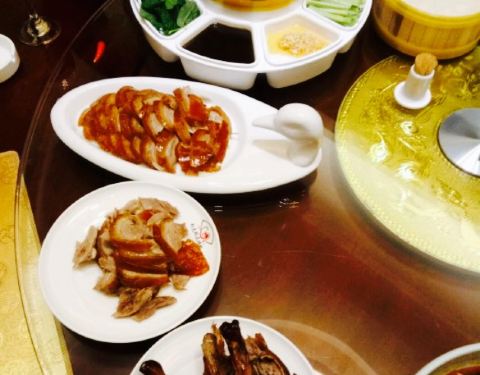 烤鸭还是烤鸭店,感觉来办小孩满月满岁席的人,都喜欢挑这家店。两个人来,点烤鸭吧,半套就九十多,不划算,没有团购的价钱优惠。所以选了二人餐。燕面糅糅分量很足啊,觉得就足够吃饱的节奏呢,石锅豆腐就没那么可口啦,烤鸭是一如既往的高兴啊,还送鸭汤,但是话说回来,还真是挺浪费的。两个人是实在吃不完,肯定要三个人才可以哦,祝老板生意兴隆。虽然来吃了两次评价了两次,但实在不是拖。嘿嘿。