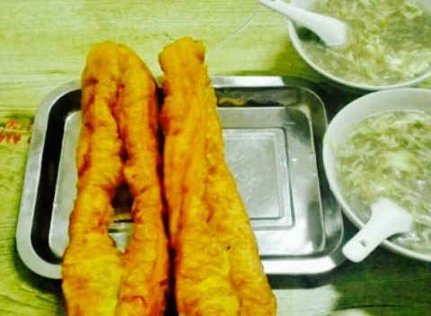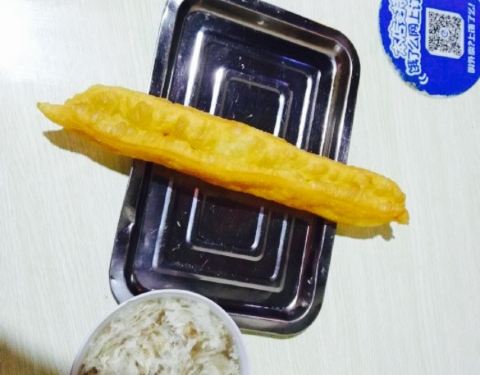 她们家的咸菜特别入味,我喜欢吃黑的那种,甜甜咸咸的很好吃,油条是之前炸好的,有些凉了也不够酥脆...