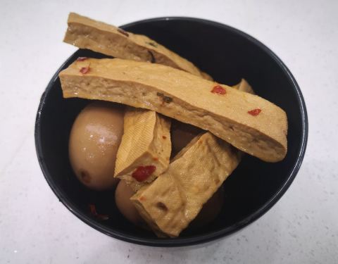 和刀削面配着吃的卤味儿,有好几种,豆腐干,卤蛋,丸子……最爱吃的,是猪肉刀削面和牛肉刀削面,里面的肉沫儿很入味儿,面很劲道,而且不是很硬。